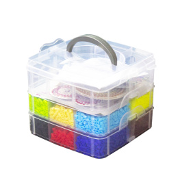 A velük való munka egyszerű - csak annyit kell tennie, hogy a gyöngyöket a sablonra helyezi, majd a befejezés után a gyöngymozaikot vasalópapíron keresztül egy hagyományos ruhavasalóval, legfeljebb közepes teljesítményen levasalja. Ennek köszönhetően a gyöngyök megolvadnak és egymáshoz rögzülnek.Minden egy praktikus műanyag dobozban van tárolva, felső fogantyúval. A játék 6 éves kortól gyermekek számára készült.