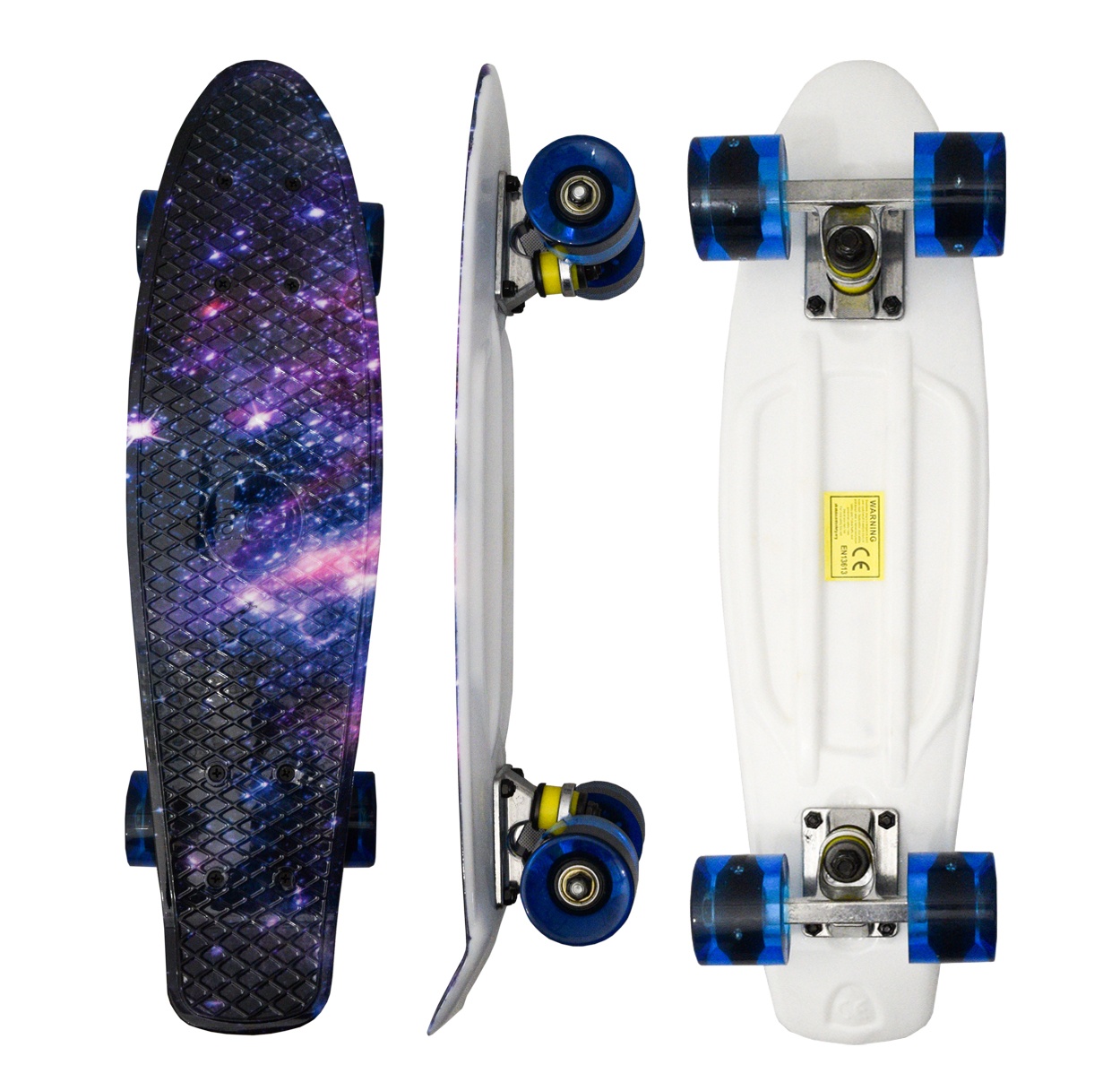 Ennek a gördeszkának az előnye a deszka tetején lévő praktikus rácsozás, amely megakadályozza a láb véletlen lecsúszását a deszkáról.