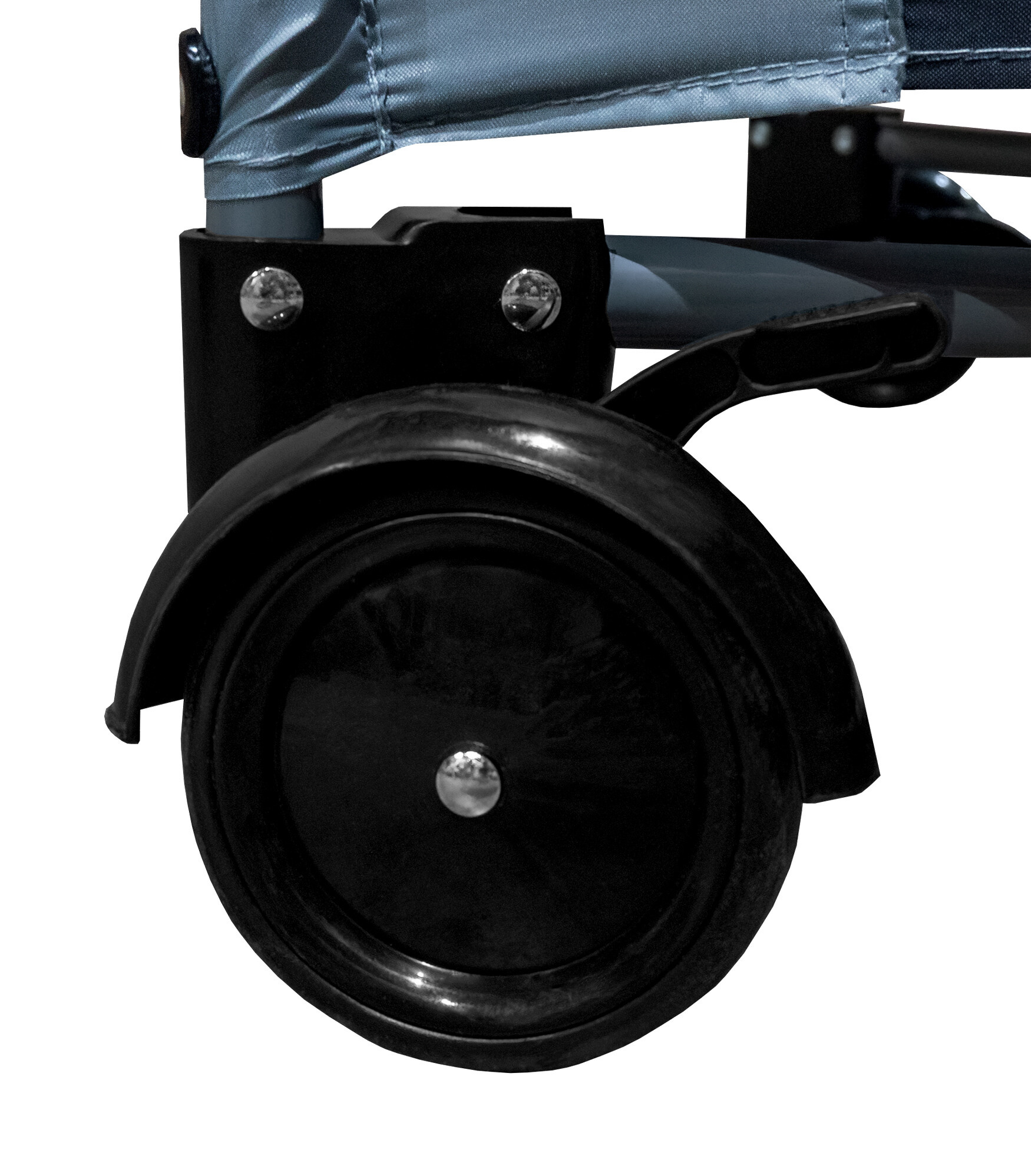 Két praktikus kerékkel van felszerelve, fékekkel a könnyebb kezelhetőség érdekében.