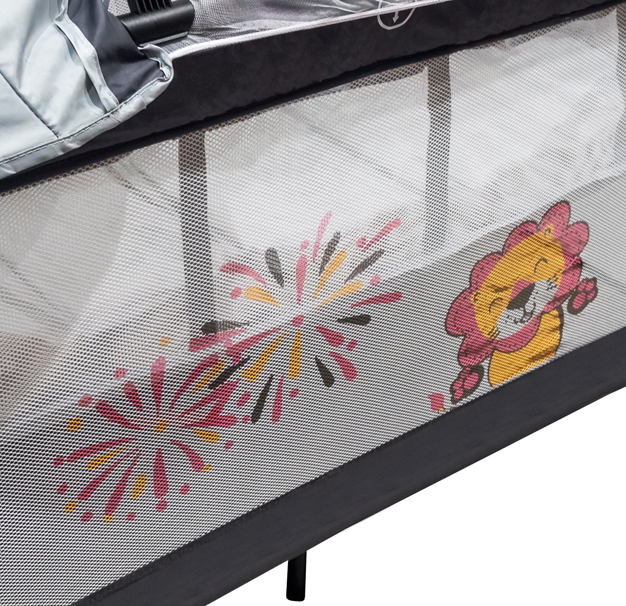 A kiságy hálós oldalfalainak köszönhetően friss levegő áramlik, és mindig láthatja a gyermeket. A kiságy összecsukható matraccal és hordozótáskával rendelkezik a kényelmes szállítás érdekében.