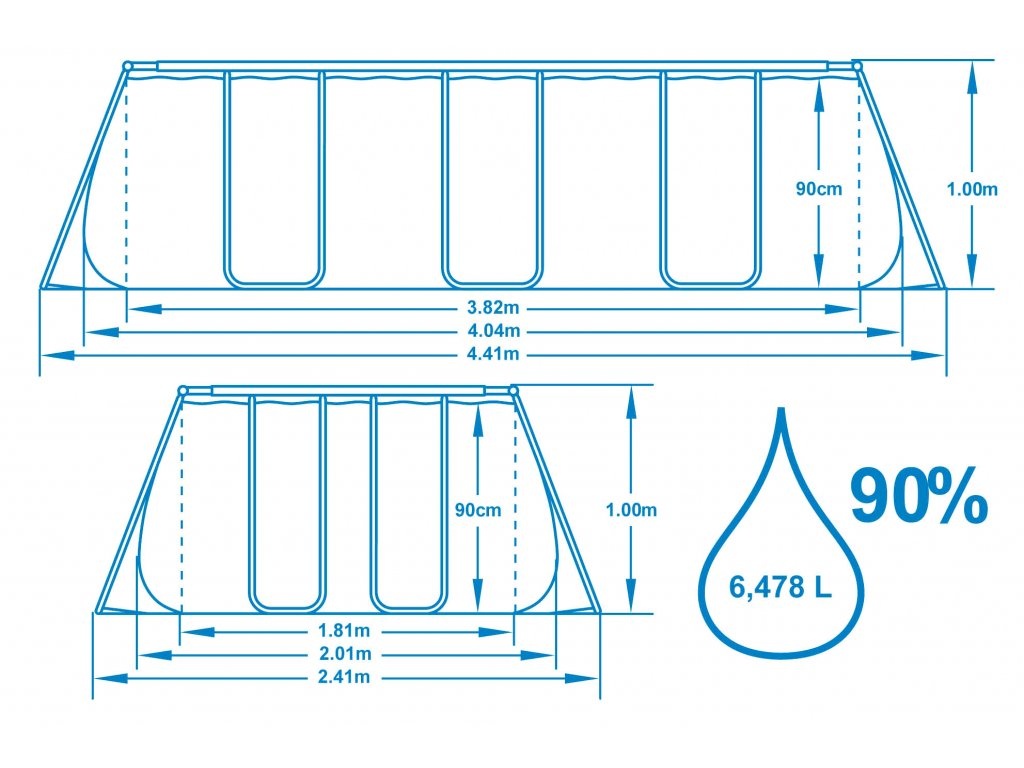 A Bestway Power acélkeretű medence műszaki adatai 4,04 x 2,01 x 1 m 56441 + szűrőbetét.