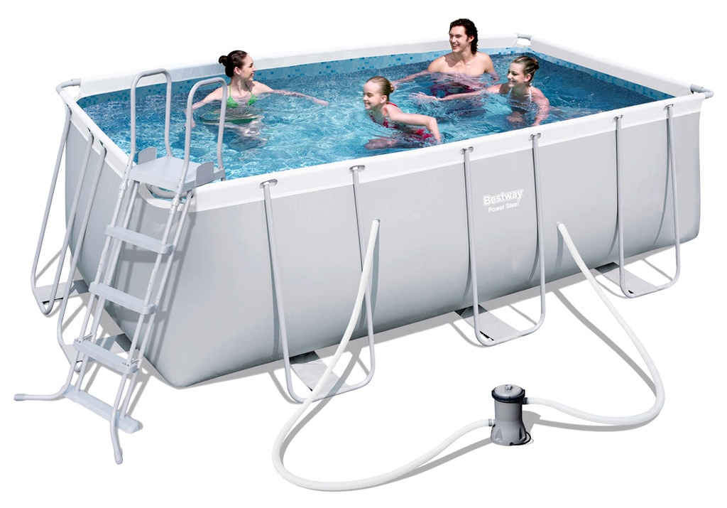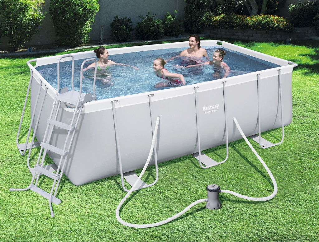 A Bestway Power acélvázas medence műszaki adatai 4,12 x 2,01 x 1,22 m 56456 + szűrőbetét.
