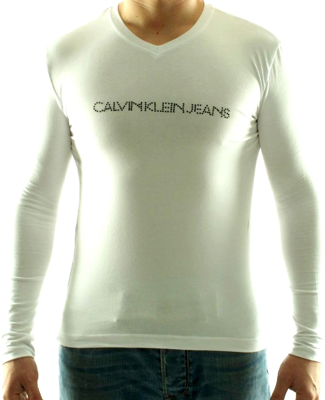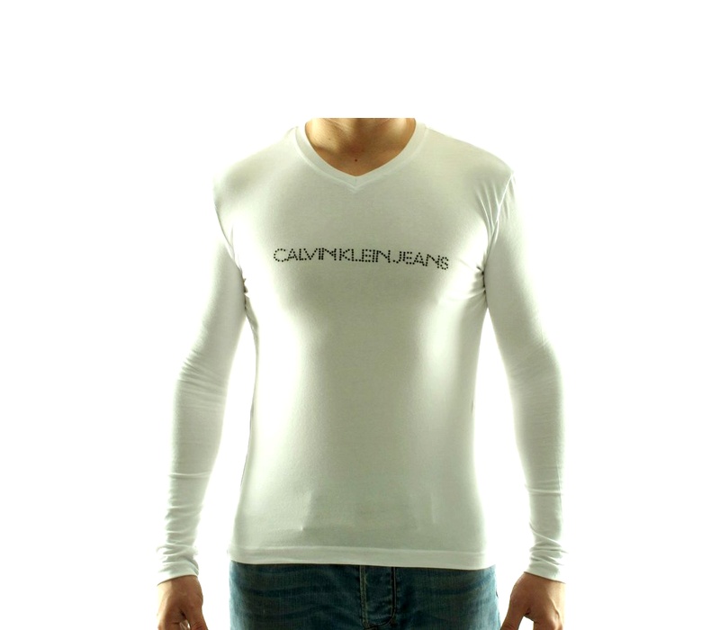 Férfi Calvin Klein póló hosszú ujjakkal és v-nyakkal, eredeti, stílusos dizájnnal, igényes férfiak számára.