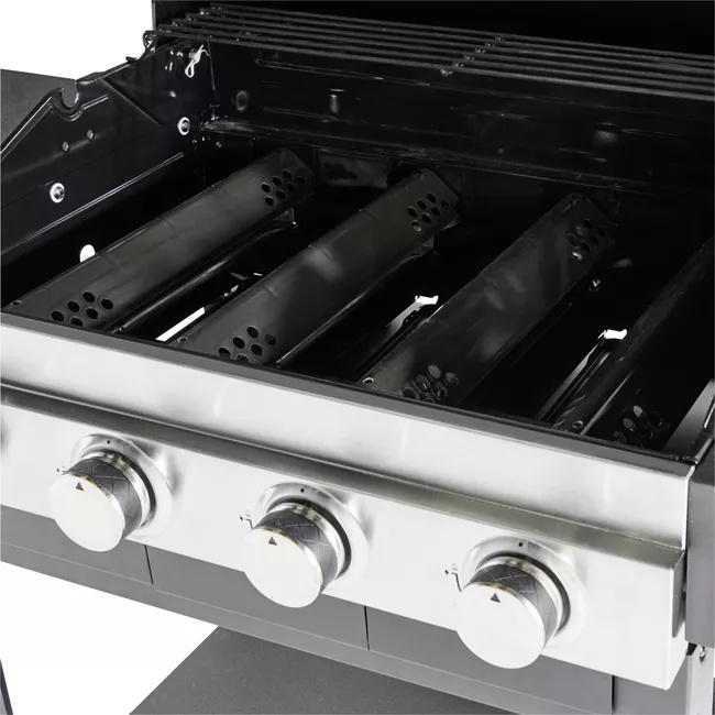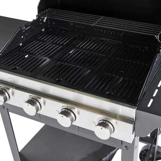 A csöves égők teljesítménye 7,2 kW, teljesen elegendő bármilyen étel grillezéséhez bármilyen időjárás esetén. A tömör öntöttvas grillrácsok egyenletesebb hőeloszlást biztosítanak. A fő grillezőhely 4 x külön szabályozható égővel van felszerelve.