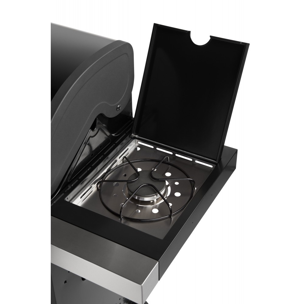 A grill beépített, a munkalapba integrált oldalsó égővel is rendelkezik - így a grillezéssel egyidejűleg kényelmesen elkészítheti kedvenc mártásait vagy köreteit. Az oldalsó égő praktikus, zárható fedele zárt állapotban munka- vagy tárolófelületként való használatot tesz lehetővé.