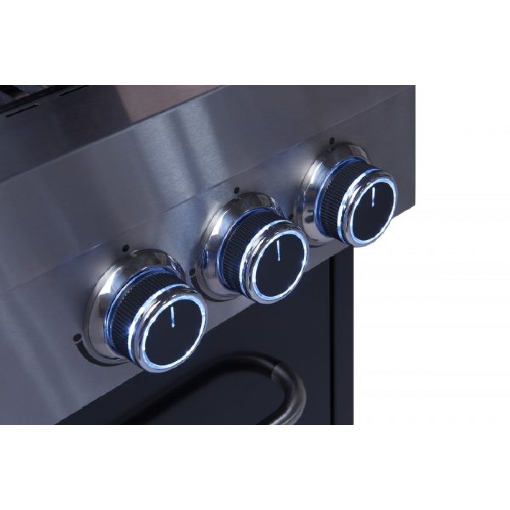 A csőégők teljesítménye 10,5 kW, ami teljesen elegendő bármilyen étel grillezéséhez bármilyen időjárási körülmények között. A tömör öntöttvas grillrácsok egyenletesebb hőeloszlást biztosítanak. Afő grillterület 3 x külön szabályozható égővel van felszerelve