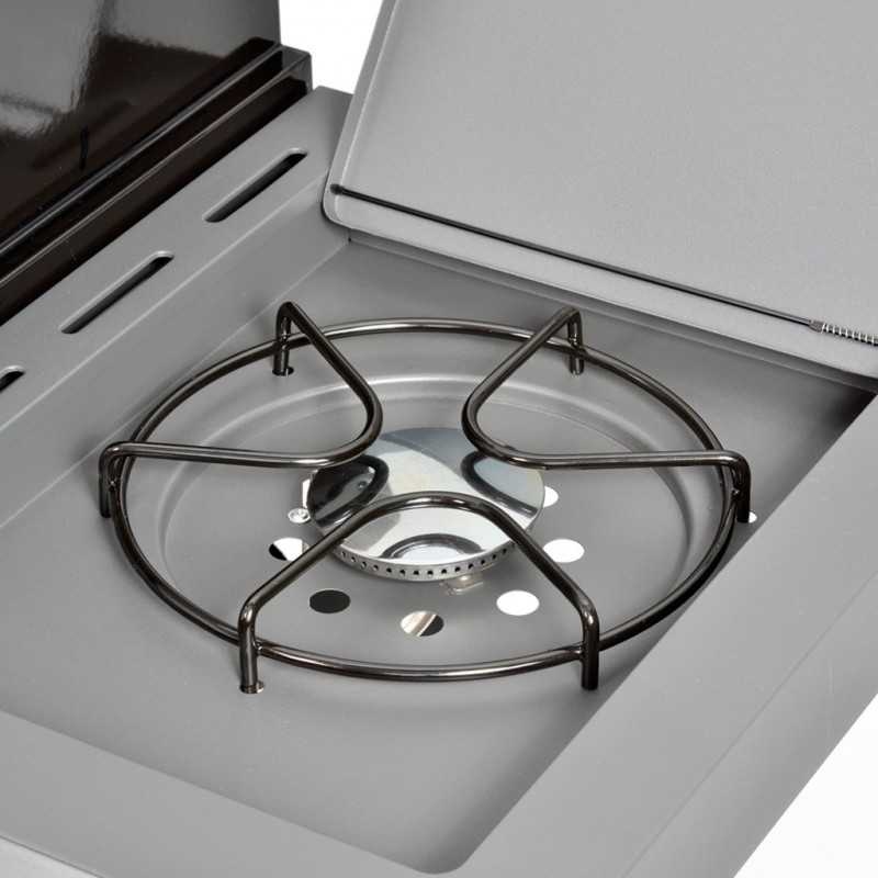 A grill beépített, a munkalapba integrált oldalsó égővel is rendelkezik - így a grillezéssel egyidejűleg kényelmesen elkészítheti kedvenc mártásait vagy köreteit. Az oldalsó égő praktikus, zárható fedele zárt állapotban munka- vagy tárolófelületként való használatot tesz lehetővé.