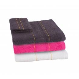 Elegáns megjelenésű törölköző JC de Castelbajac hímzett logóval és szőtt szegéllyel, amely minden fürdőszobába illik.