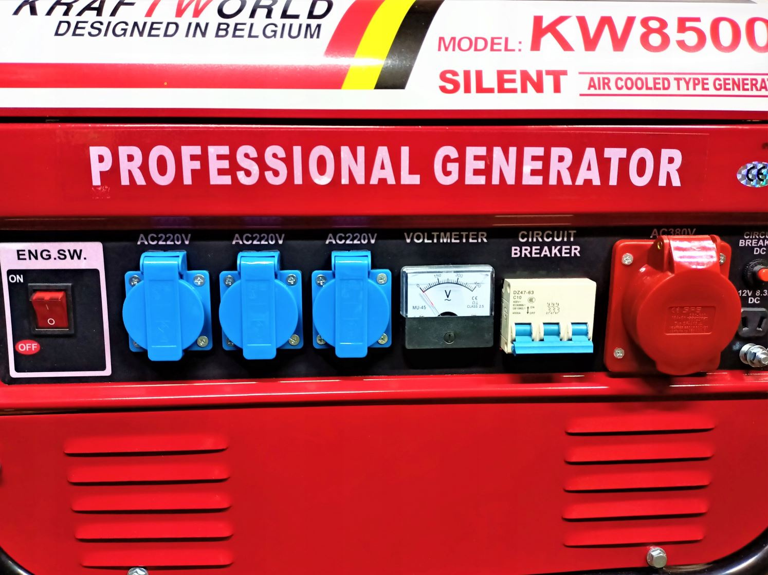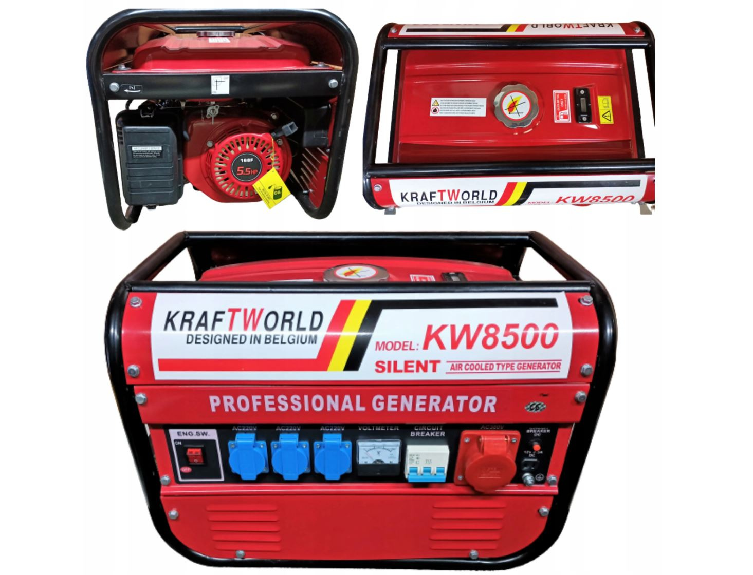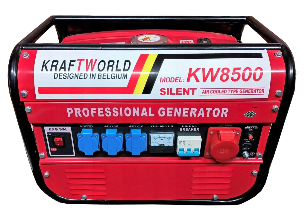 A hordozható háromfázisú generátor 220V/380V váltakozó áram előállítására szolgál egy 163 cm3-es, négyütemű, 5,5 LE teljesítményű belsőégésű motorral.