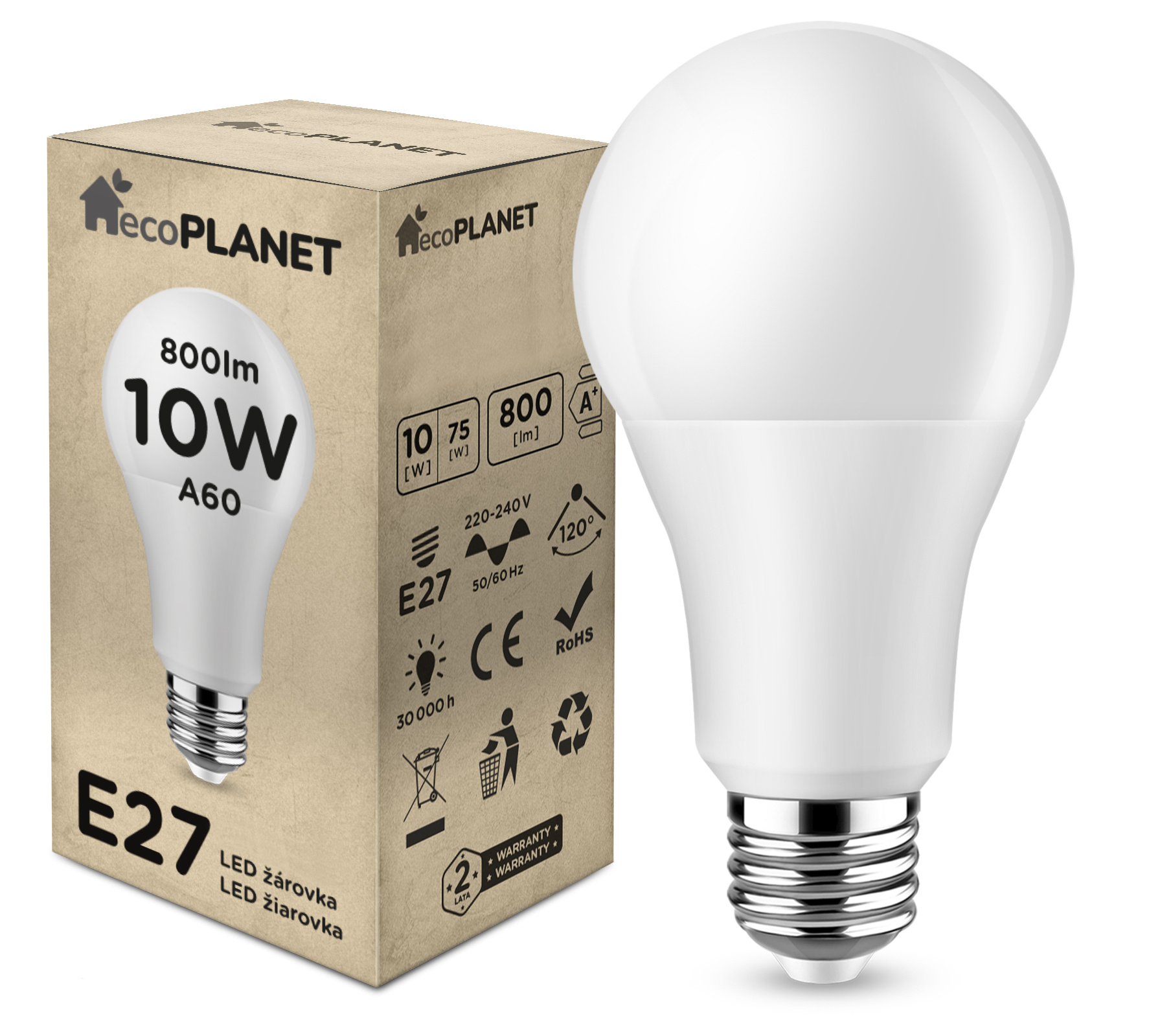 LED izzó - ecoPLANET - E27 - 10W - 800Lm - hideg fehér