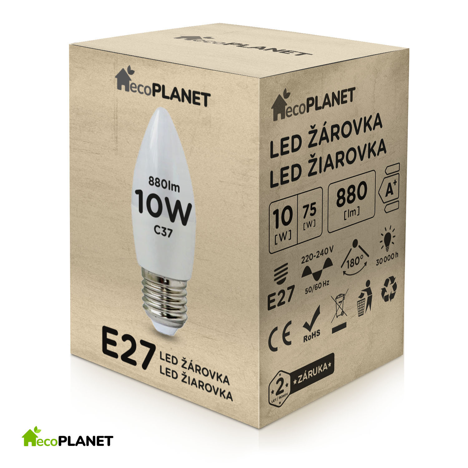 LED izzó - ecoPLANET - E27 - 10W - gyertya - 880Lm - meleg fehér