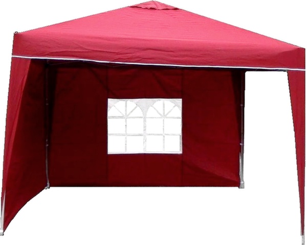 Gyorsan összecsukható ollós szerkezettel és két oldalsó vízálló fallal, egy ablakkal felszerelt kerti pavilon.