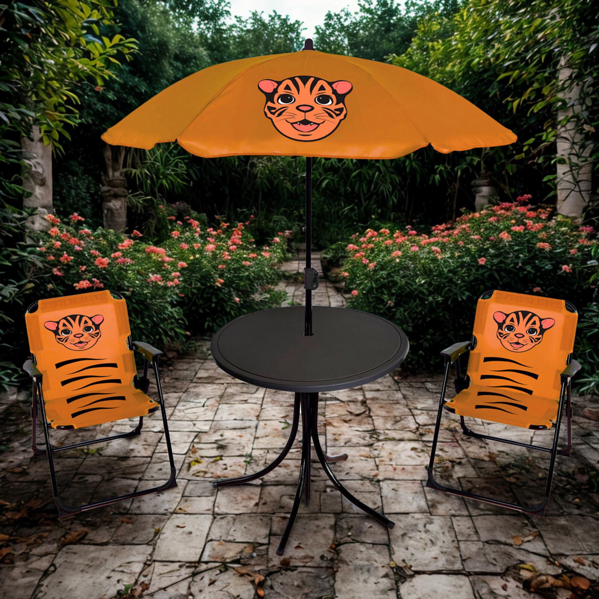 Az állatfigurával díszített bútorokat a gyerekek az egész nyári szezonban használni fogják, így sok időt töltenek majd a friss levegőn. Kényelmesen elhelyezkednek a színes ülőkéken, és kellemesen meguzsonnáznak a kerek asztalnál. Ráadásul a napernyőnek köszönhetően árnyékban lesznek, ahol nyugodtan játszhatnak, olvashatnak vagy fogadhatják vendégeiket.