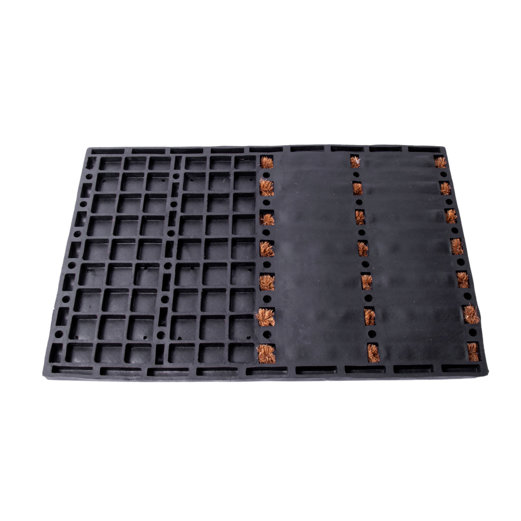 A kókuszrost szőnyeg természetes anyagból készül, ami környezetbaráttá és ökológiailag kímélővé teszi. A kókuszrost szőnyeg nagyon tartós és ellenáll a nagy mennyiségű gyalogos forgalomnak. Ezért ideális az átjáró terekben való használatra. A kókuszrost szőnyeg képes felszívni a nedvességet, ami nagyszerű választássá teszi bejáratokhoz és folyosókhoz, ahol elnyelheti a cipőkről származó nedvességet és megfoghatja a szennyeződéseket.A gumis rész a nyom részletével alkalmas a szennyezett/nedves cipők tárolására.