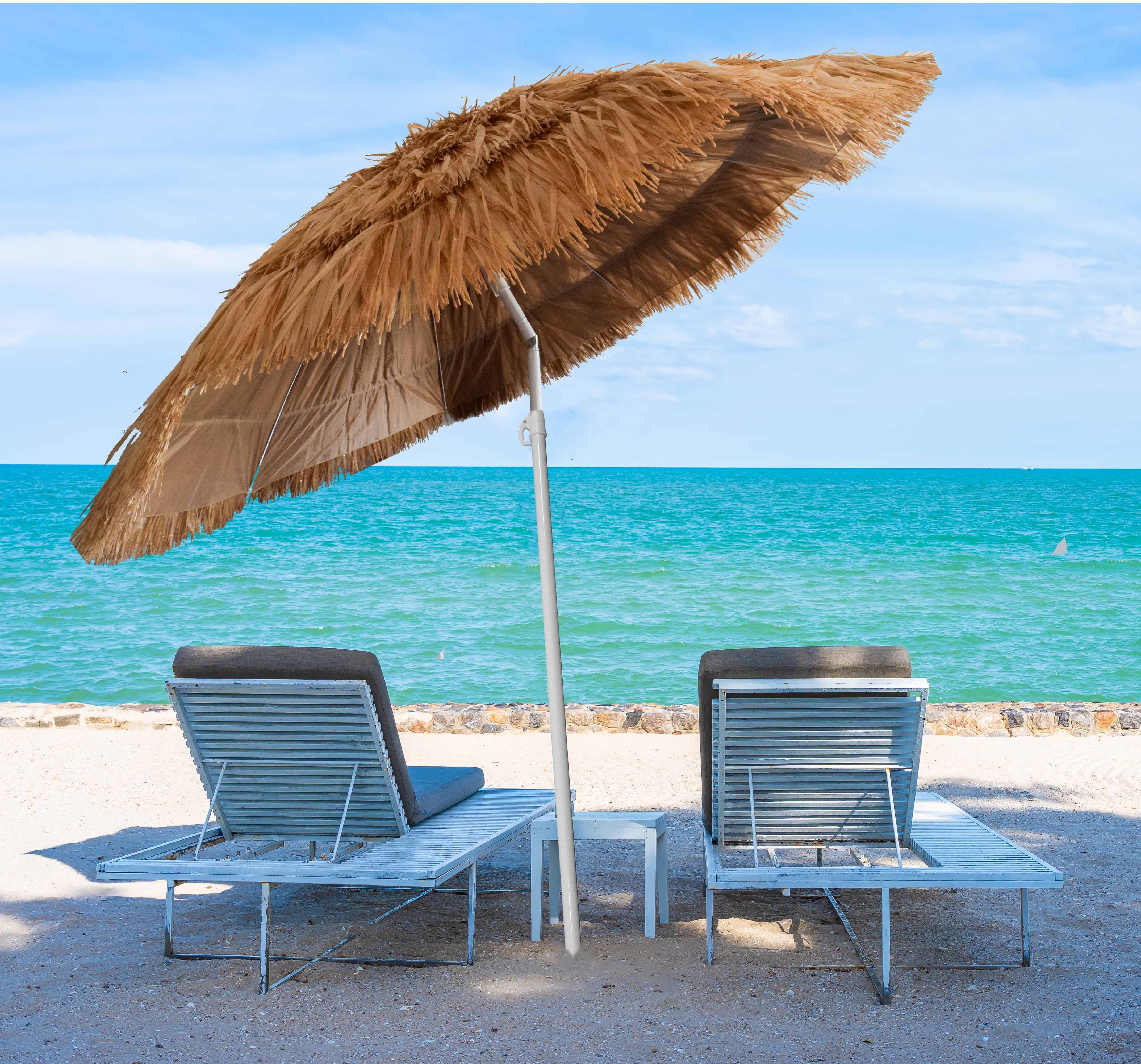 Az esernyő kellemes árnyékot ad, és megvéd a naptól és a káros UV-sugaraktól.