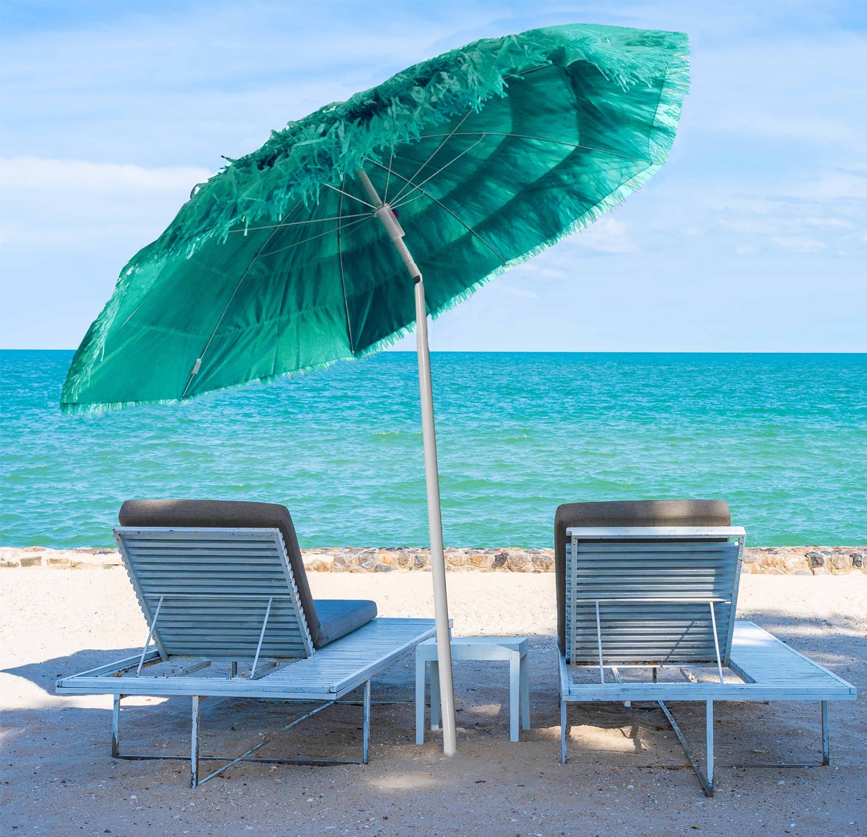 Az esernyő kellemes árnyékot ad, és megvéd a naptól és a káros UV-sugaraktól.
