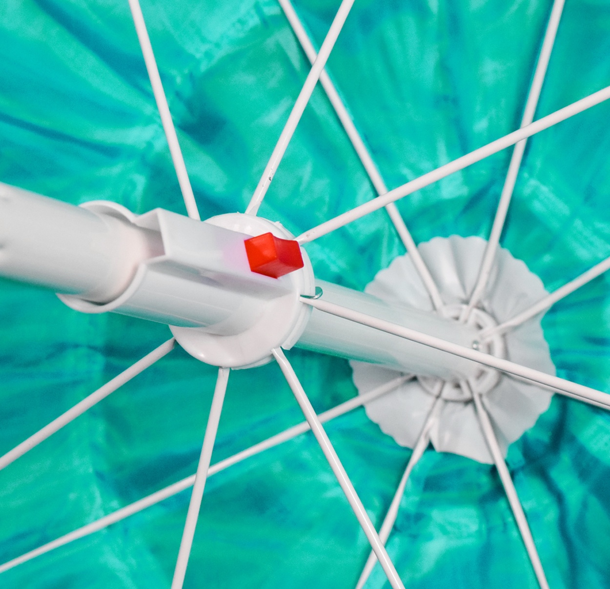Az ernyő ernyőtetője több réteg polietilén csíkból készül.Szilárd konstrukcióval és minőségi huzattal, amely tartós poliészter anyagból készült.