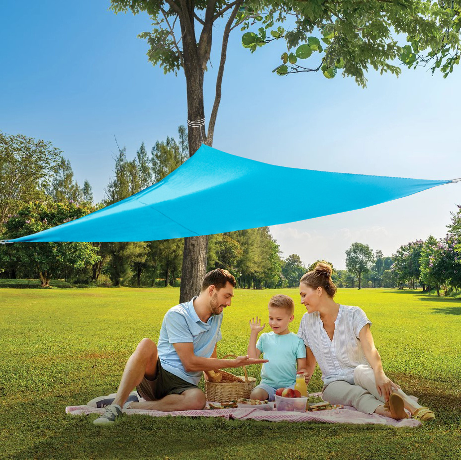 A háromszög alakú formának és a ponyva minden sarkában lévő hurkoknak köszönhetően az árnyékoló ponyva felakasztása nagyon egyszerű.
