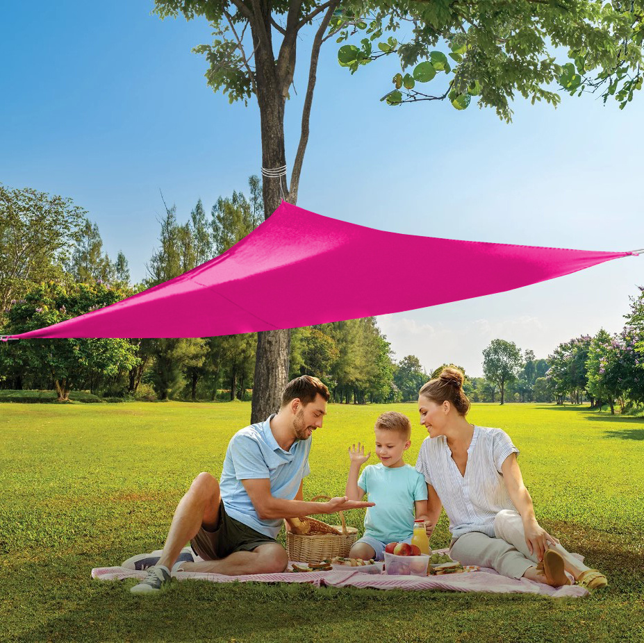 A háromszög alakú formának és a ponyva minden sarkában lévő hurkoknak köszönhetően az árnyékoló ponyva felakasztása nagyon egyszerű.