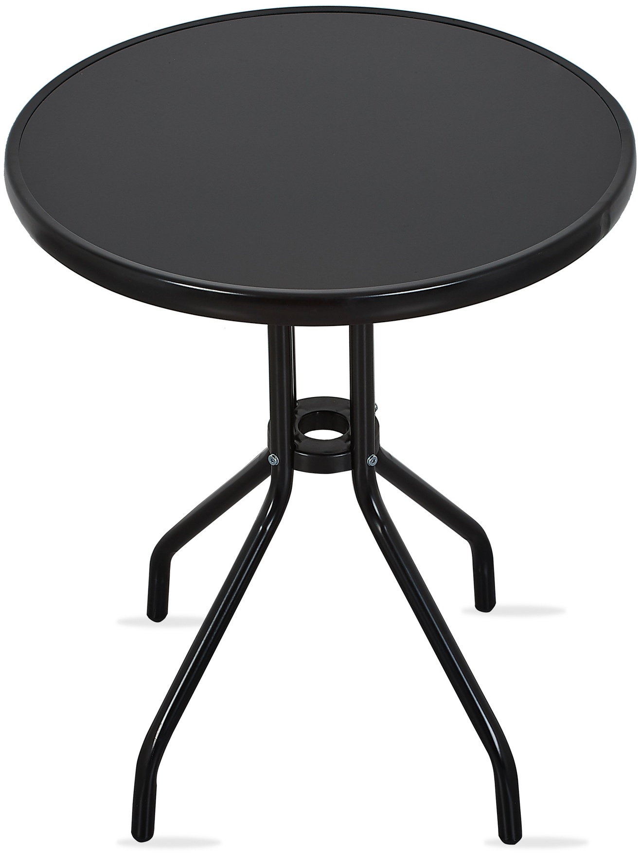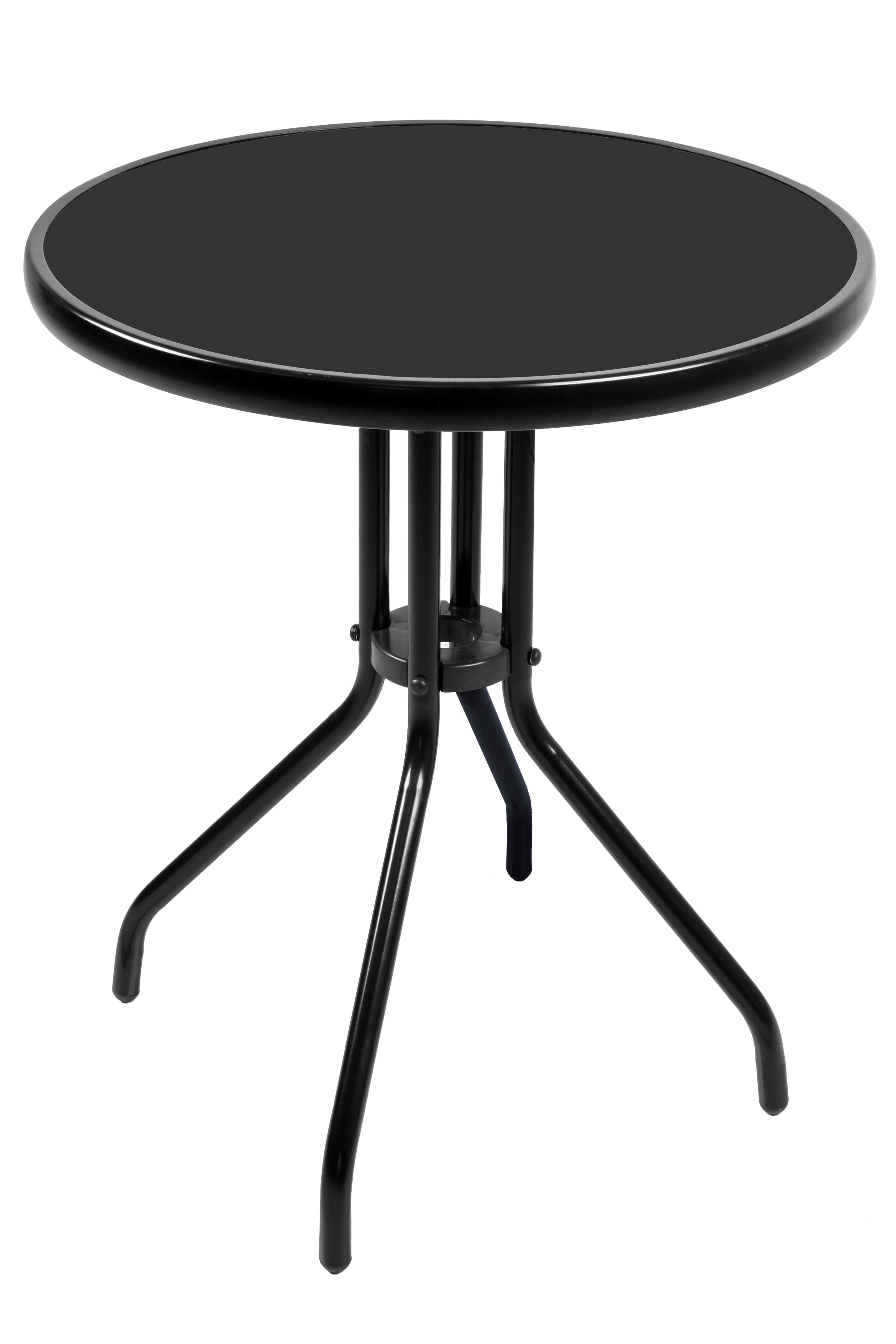 Kerti asztal tömör fémvázzal és üveglappal, modern kivitelben, kertekbe alkalmas, teraszok, kávézók, pavilonok, erkélyek vagy strandok.