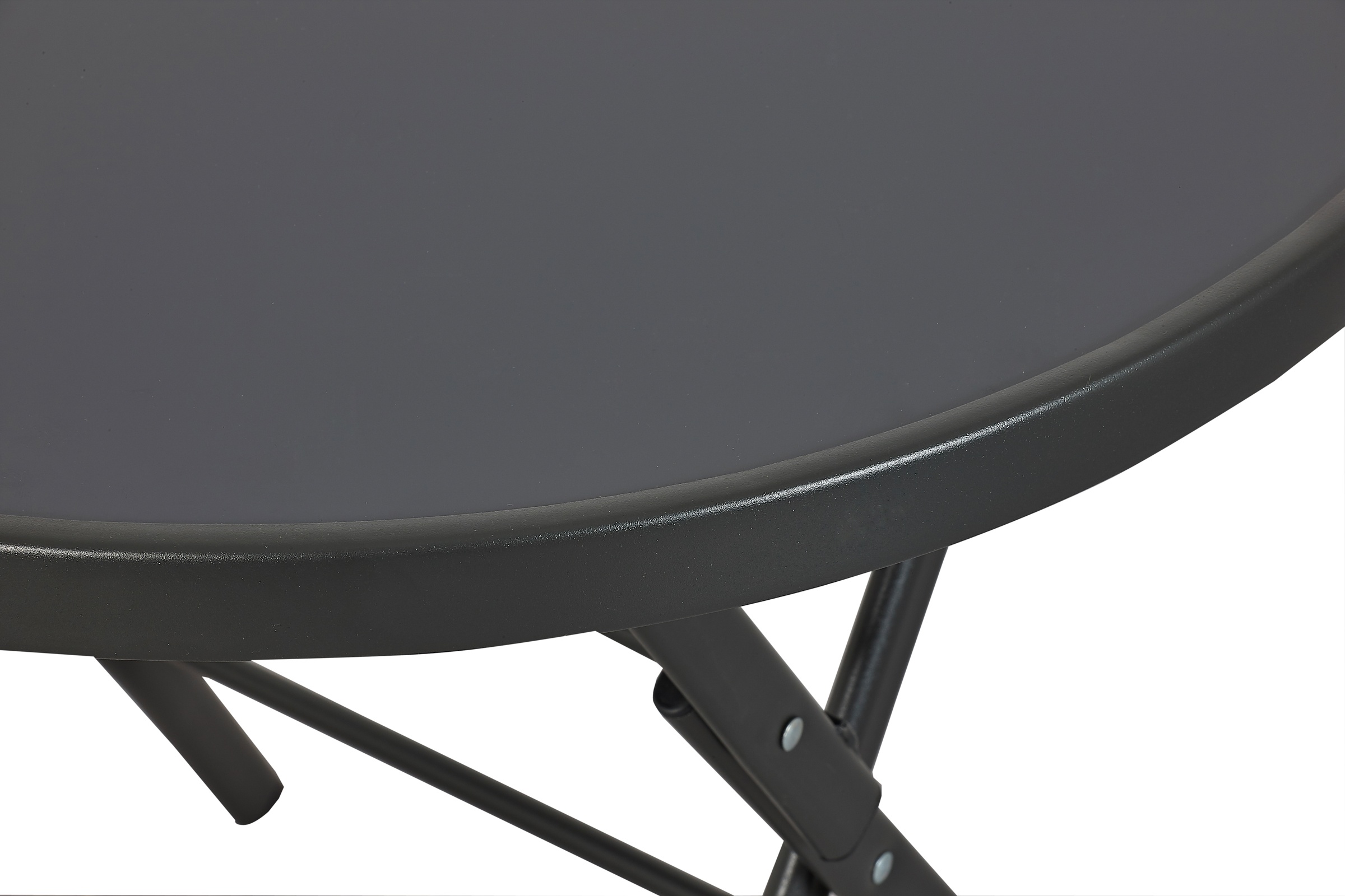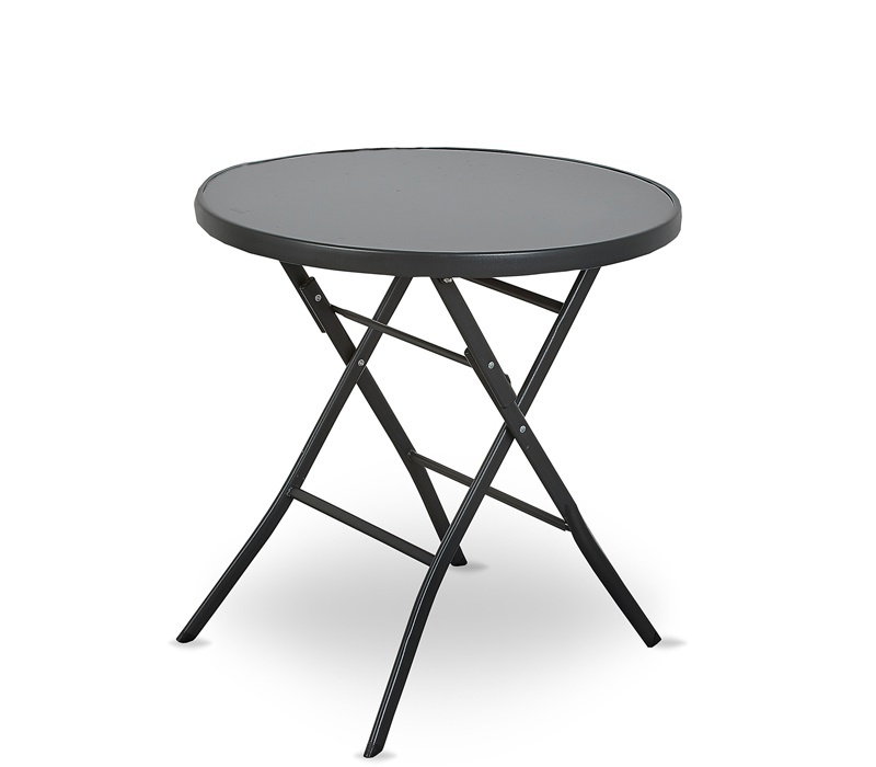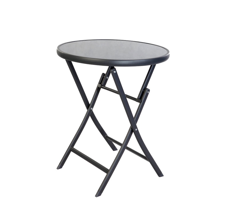 Összecsukható kerti asztal tömör fémvázzal és üveglappal, ideális kerti használatra, teraszok, pavilonok, erkélyek, de éttermek és kávézók belső termeihez is.