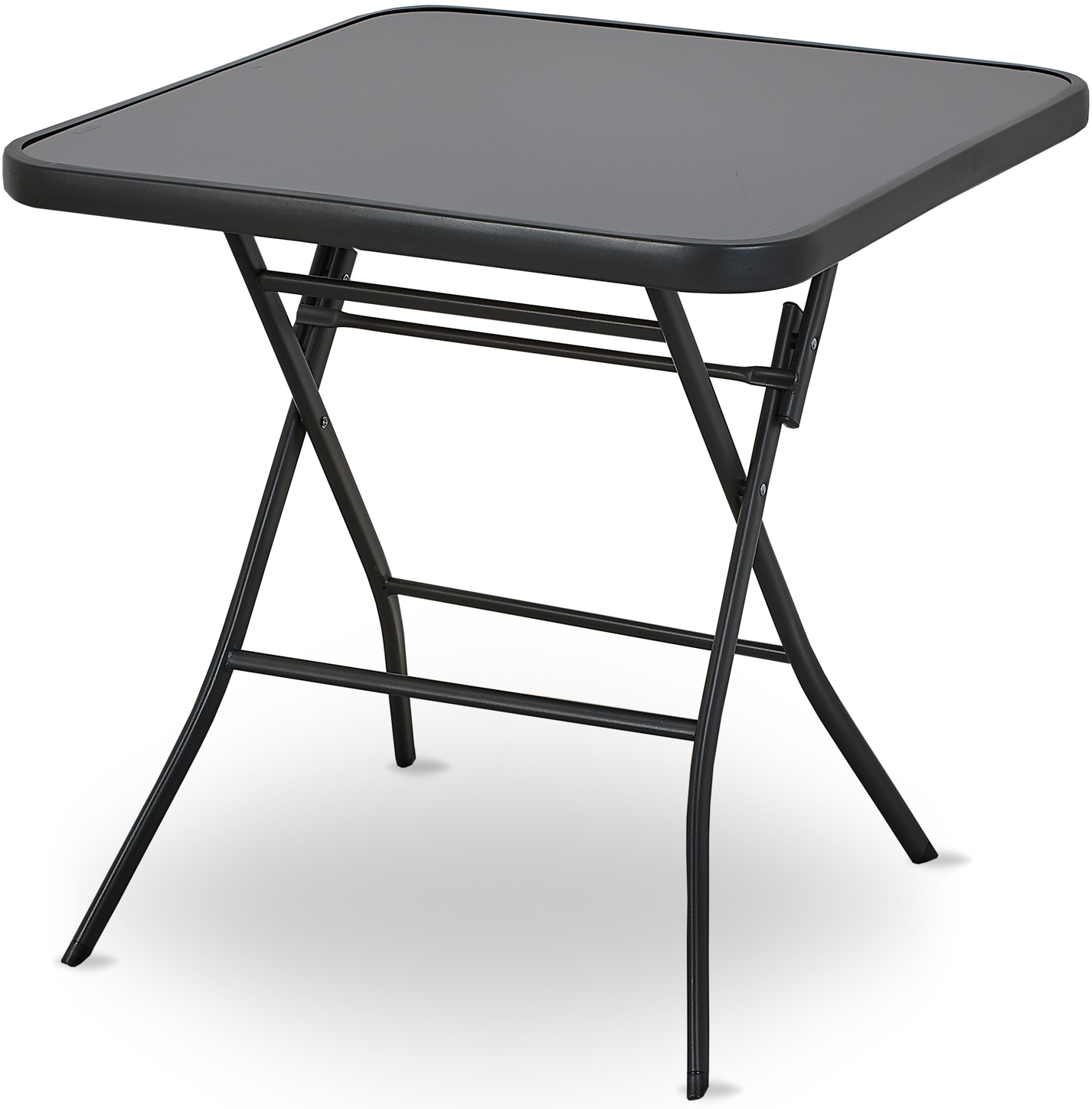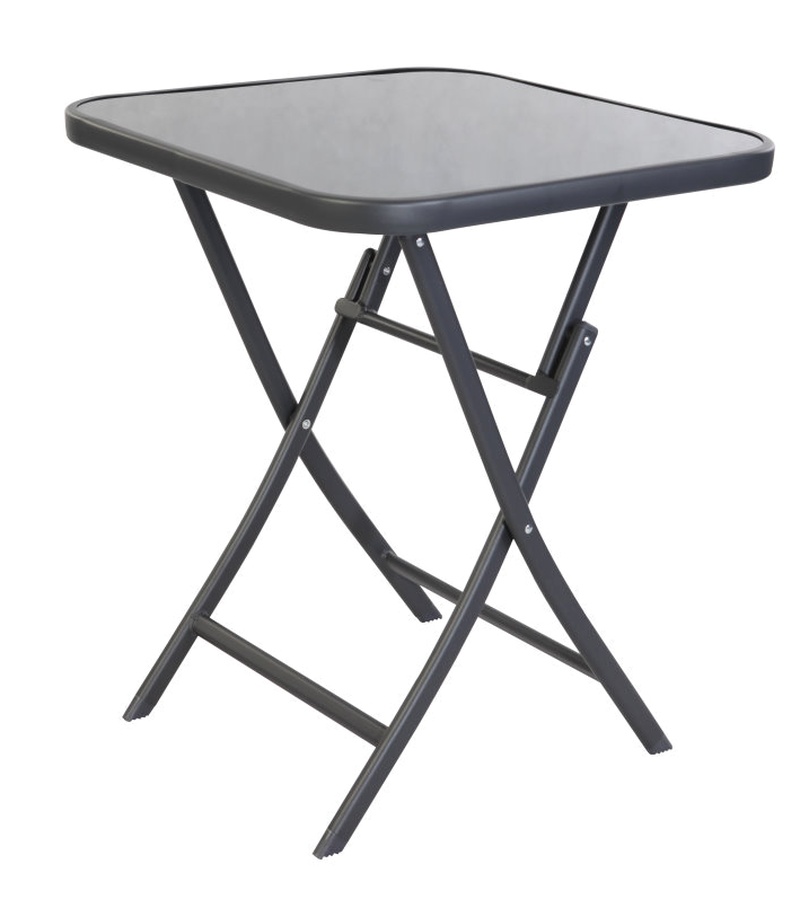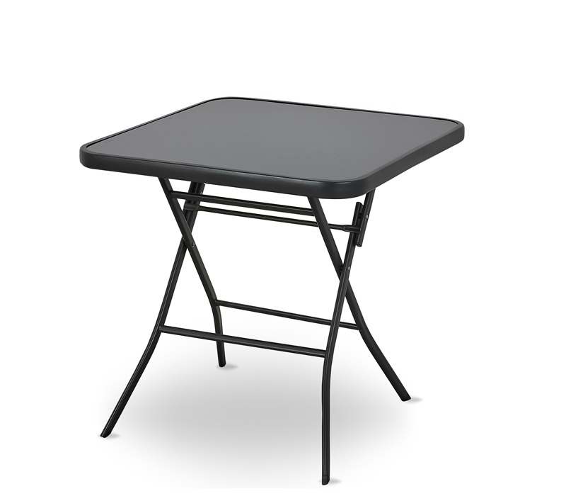 Összecsukható kerti asztal tömör fémvázzal és üveglappal, ideális kerti használatra, teraszok, pavilonok, erkélyek, de éttermek és kávézók belső termeihez is.