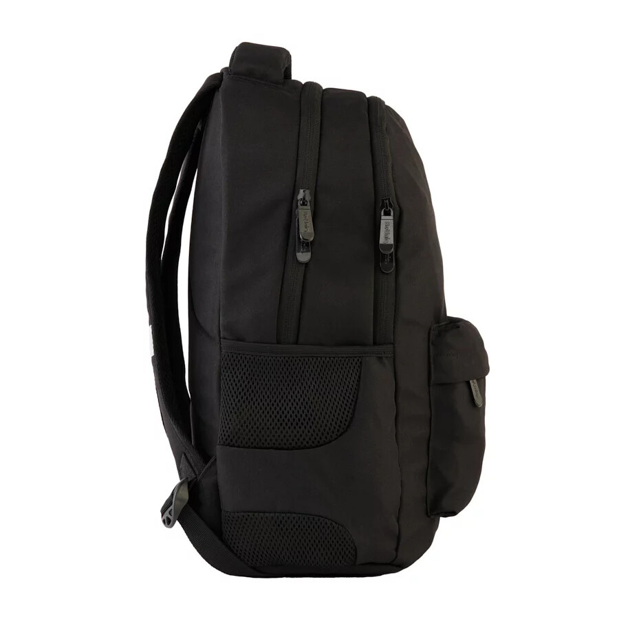 Három tágas rekesszel, elülső cipzáras zsebbel, szervezővel és két oldalsó hálós és szövetzsebbel rendelkezik palack vagy termosz számára.