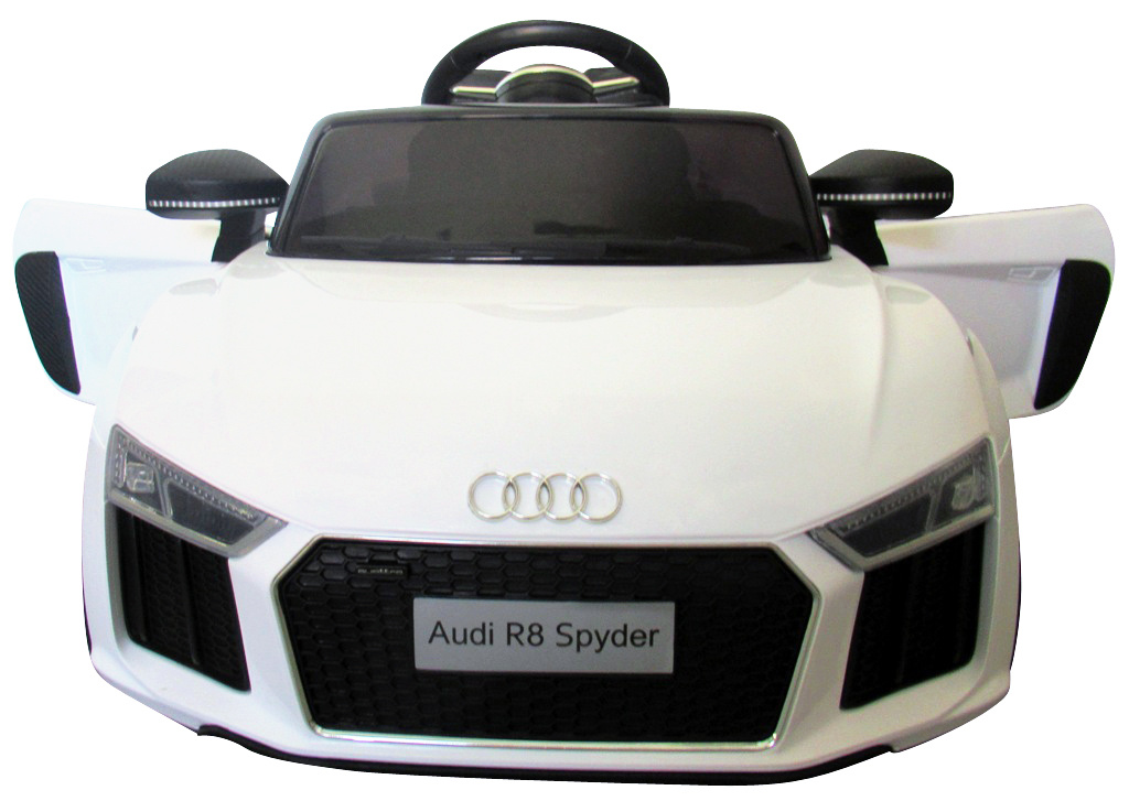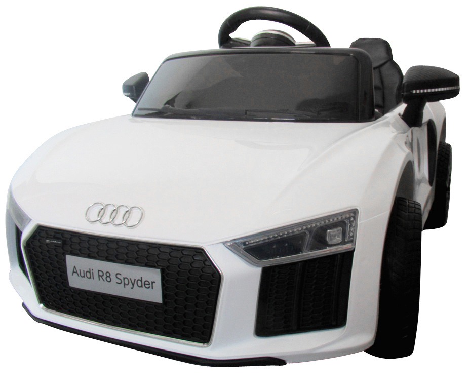 Kétüléses elektromos gyermekautó modern AUDI R8 formatervezésben, 3 éves kortól, innovatív távirányítóval a szülők számára.