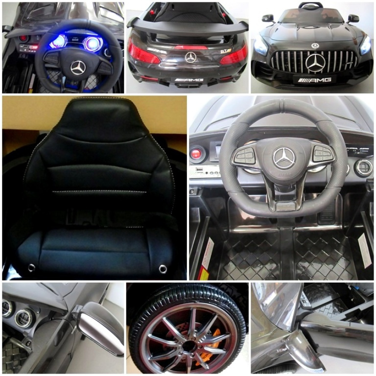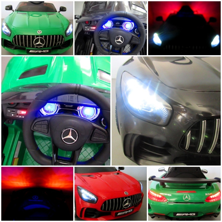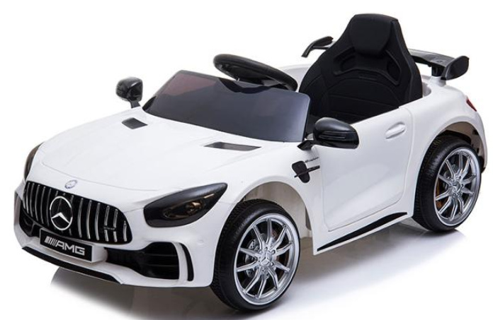 Kétüléses elektromos gyermekautó modern Mercedes GTR kivitelben, 3 éves kortól, innovatív távirányítóval a szülők számára.