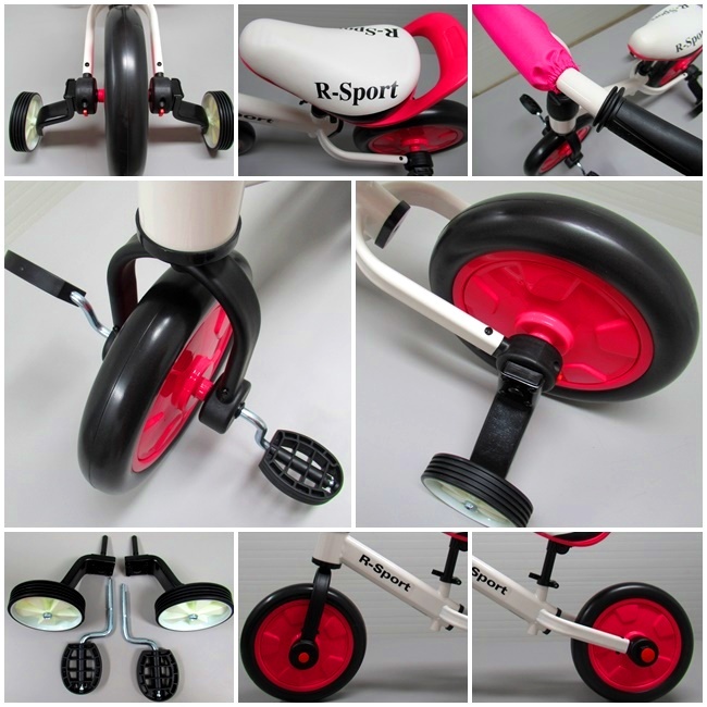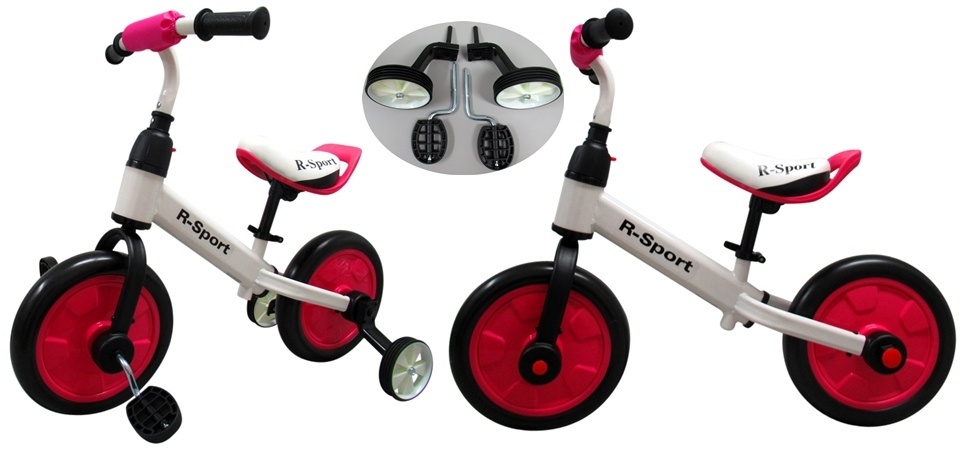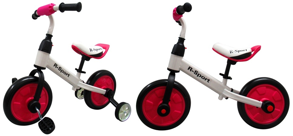 A futóbicikli villámgyorsan átalakítható kerékpárrá, háromkerekűvé vagy akár futóbiciklire segédkerekekkel a még nagyobb stabilitás érdekében.