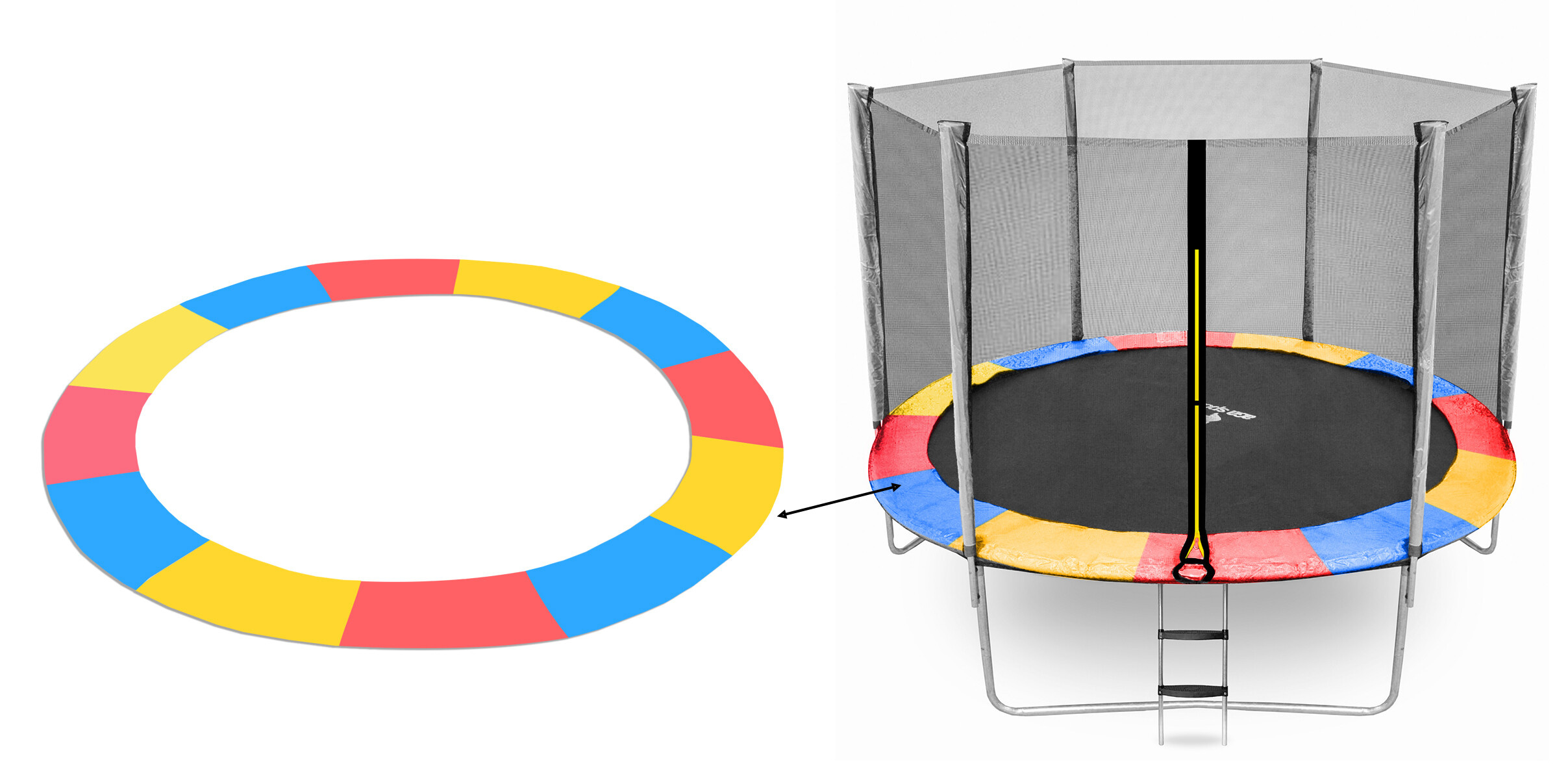 Ez az univerzális rugóvédő burkolat teljes értékű pótlása az eredeti alkatrészének a trambulinjáról, és különböző gyártók trambulinjain is használható, csak az a fontos, hogy betartsa a megadott átmérőt (méretet) és az eredeti burkolat formáját.