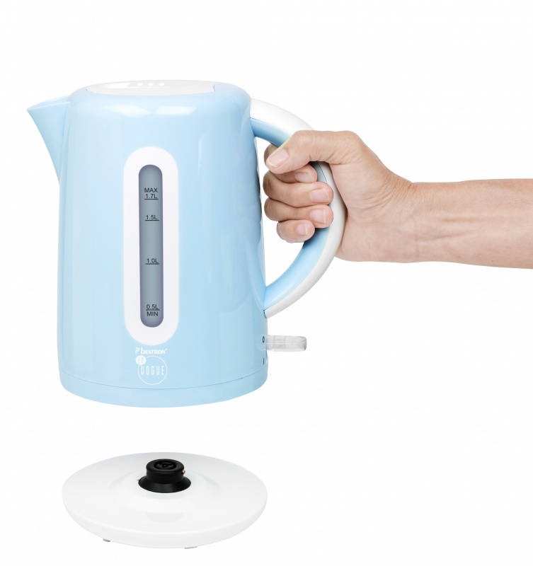 Térfogat: 1,7 l Automatikus forralás leállítás és szárazon történő bekapcsolás elleni védelem Beépített fűtőelem, amely ellenáll a vízkőlerakódásnak Kétoldali vízszintjelző Biztonsági zárral ellátott forgó fedél Praktikus kábeltároló Be/Ki kapcsoló jelzőfénnyel Csúszásmentes lábak