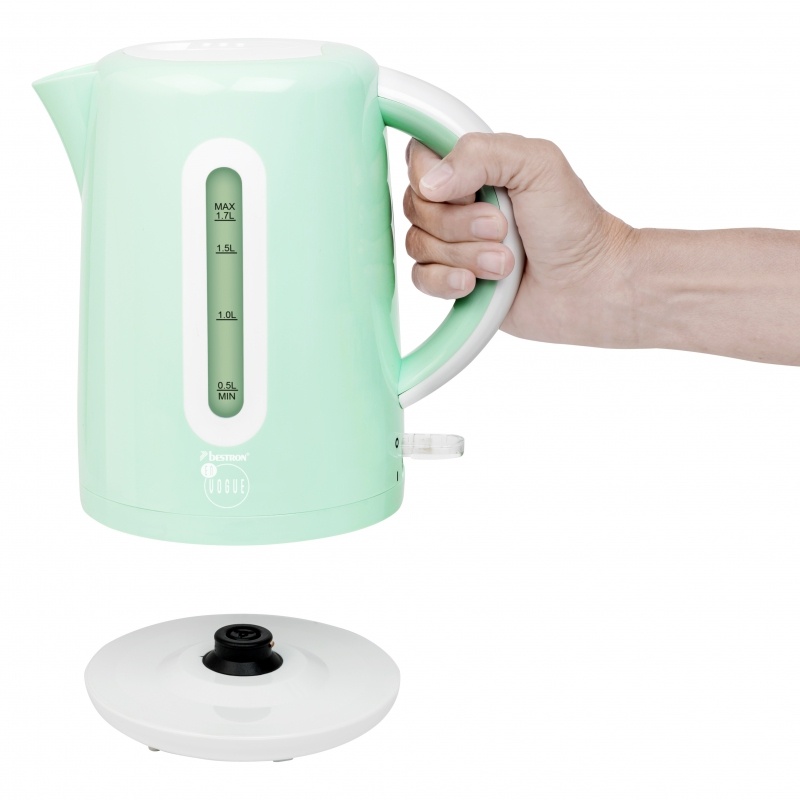 Kiváló minőségű műanyag tok. Gyorsan forralja a vizet teához, leveshez stb. Űrtartalom 1,7 l Automatikus forralásleállítás és védelem a "száraz" indítás ellen. Beépített fűtőelem, amely ellenáll a vízkőlerakódásnak. Szintjelző mindkét oldalon. Forgatható fedél biztonsági zárral. Praktikus felhúzható kábel, kapcsoló jelzőfénnyel, csúszásmentes lábak.