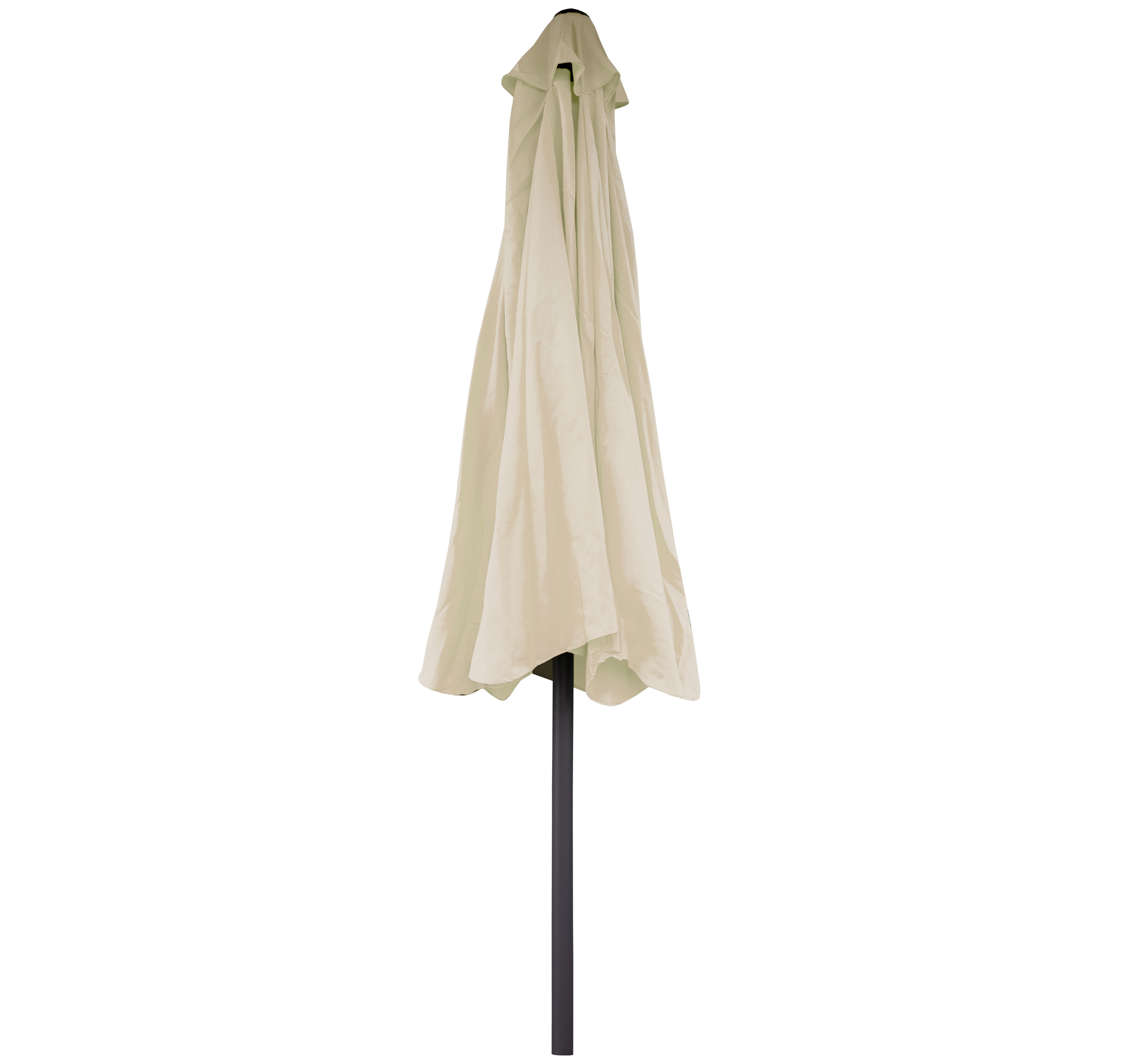 Klasszikus kerti napernyő masszív konstrukcióval és minőségi , tartós poliészter anyagból készült huzattal .