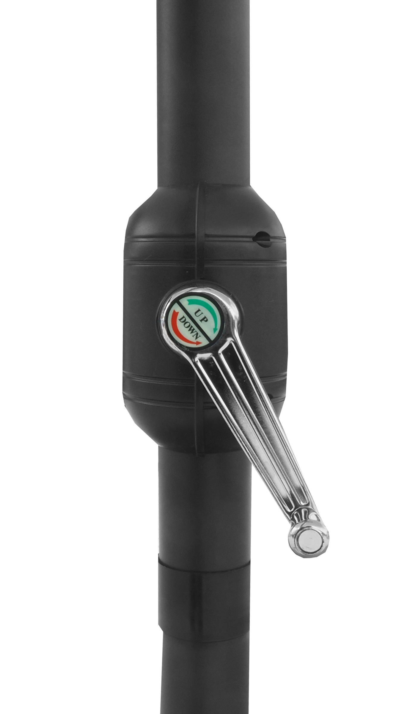 Egy egyszerű kurblimechanizmus biztosítja a könnyű kezelhetőséget a napernyő ki- és behajtásakor.