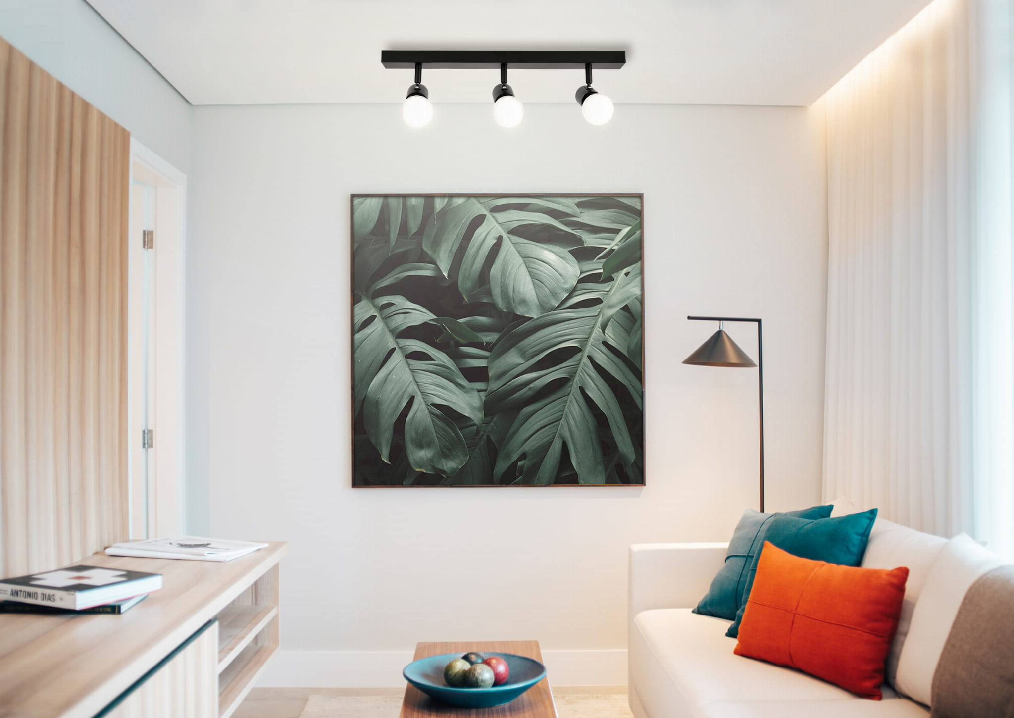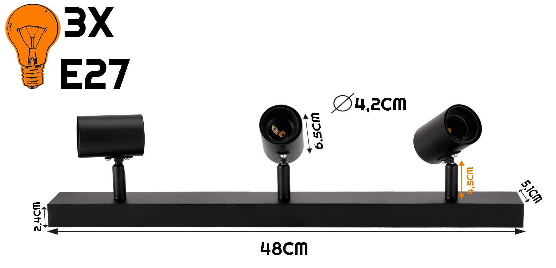 A lámpatest matt fekete sín -ből áll, amelyre E27 fényforrás helyezhető, így biztosítva az energiatakarékos helyiségvilágítást.