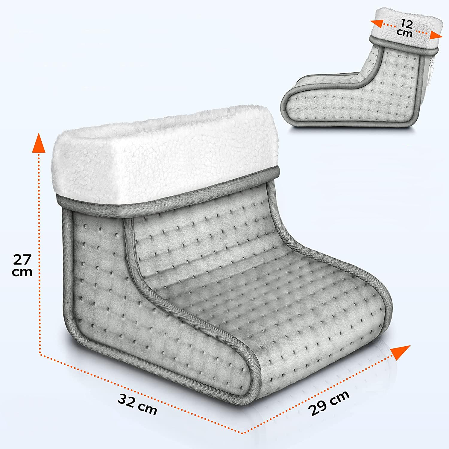 A biztonságos működést túlmelegedés elleni védelemmel ellátott biztosíték biztosítja. A plüss bélés kihúzható a cipőből, amely mosógépbe tehető és 30°C-on mosható.