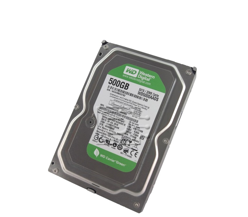 Egy 500 GB-os Western Digital merevlemez, amelynek tányérjai 7200 fordulat/perc sebességgel forognak.